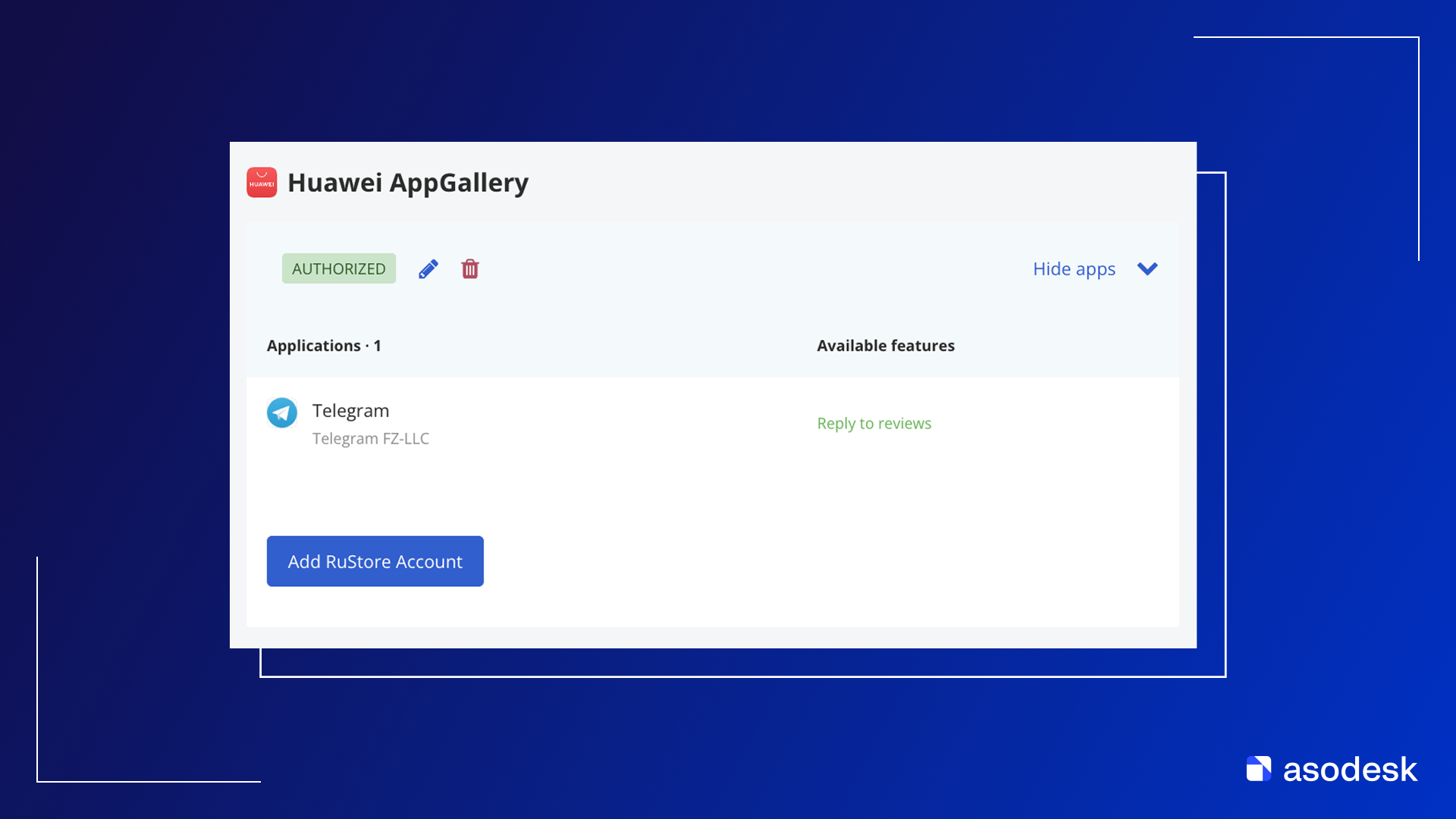 We’re continuing to expand Asodesk’s functionality and are excited to announce the launch of our integration with Huawei AppGallery for user review management.